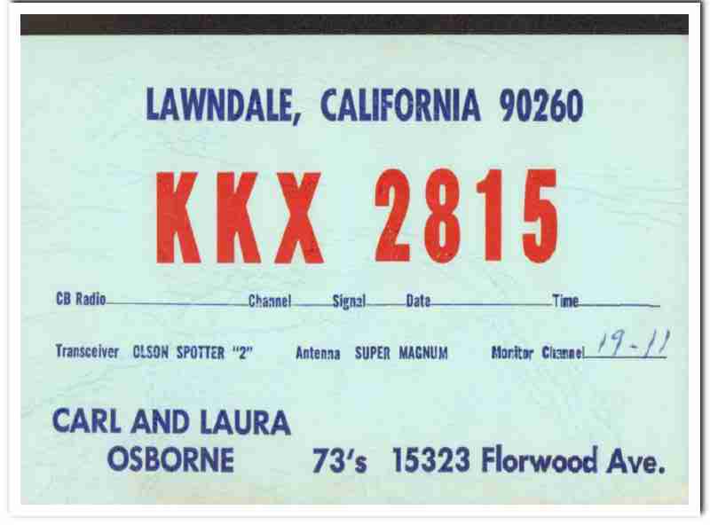 KKX-2815 Carl Osborne Lawndale CA 1960s Vintage Postcard CB QSL 1