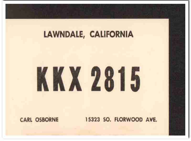 KKX-2815 Carl Osborne Lawndale CA 1960s Vintage Postcard CB QSL 2