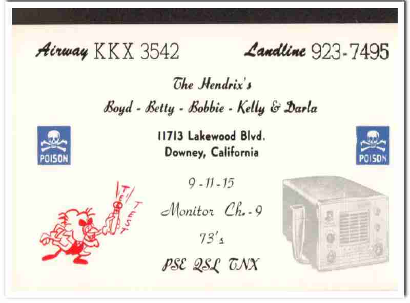 KKX-3542 Boyd Hendrix Downey CA 1960s Vintage Postcard CB QSL Card