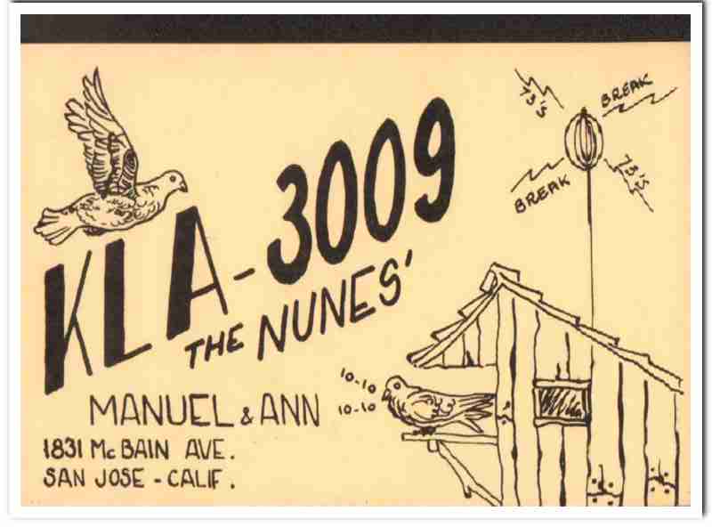 KLA-3009 Manuel Nunes San Jose Cali 1960s Vintage Postcard CB QSL Card