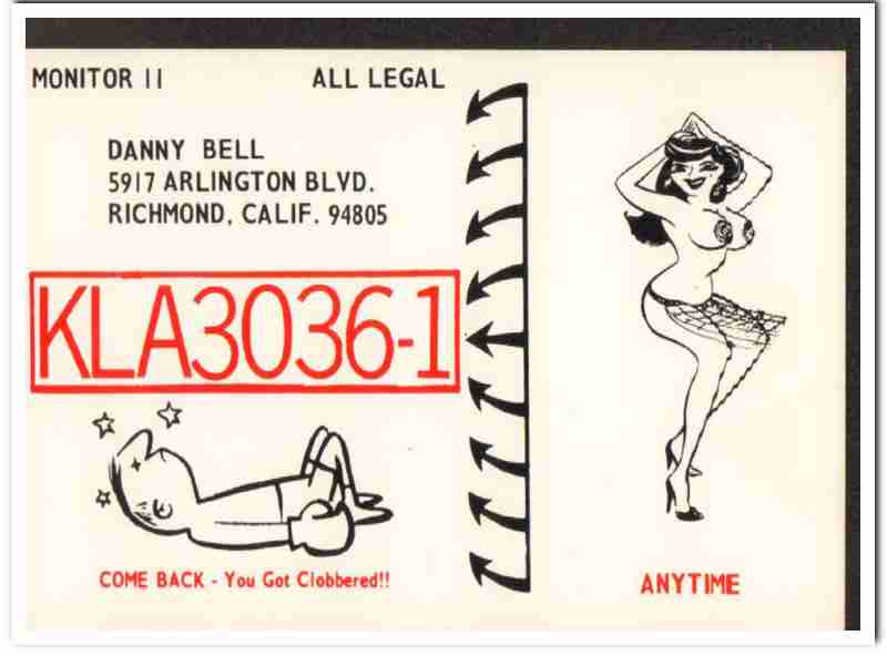 KLA-3036 Danny Bell Richmond CA 1960s Vintage Postcard CB QSL Card