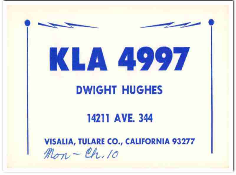 KLA-4997 Dwight Hughes Visalia CA 1960s Vintage Postcard CB QSL