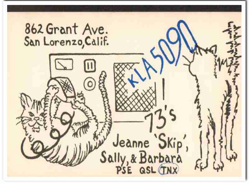 KLA-5090 Skip Jeanne San Lorenzo CA 1960s Vintage Postcard CB QSL 1