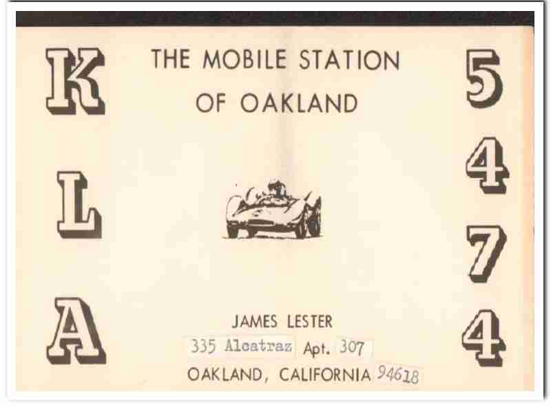KLA-5474 James Lester Oakland CA 1960s Vintage Postcard CB QSL Card