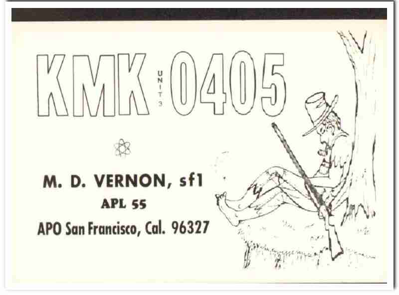 Original QSL postcard from the mid to late 1960s.This unused card was sent from CB radio station: KMK-0405. Was issued to M.D. Vernon, sf1, APL 55, APO San Francisco, California. Unit 3. During the 1920s and 1930s, amateur ham radio operators adopted the practice of two-way exchanging of QSL postcards, to confirm their radio contact, with a report of reception. QSL cards got to be known as wallpaper, commonly used to decorate the walls of their radio equipment room. During the 1960s, CB citizen band radio became popular, and the practice of exchanging QSL cards to confirm radio contacts was enjoyed by many with this new hobby. Today, these cards are very collectible and look great matted and framed.