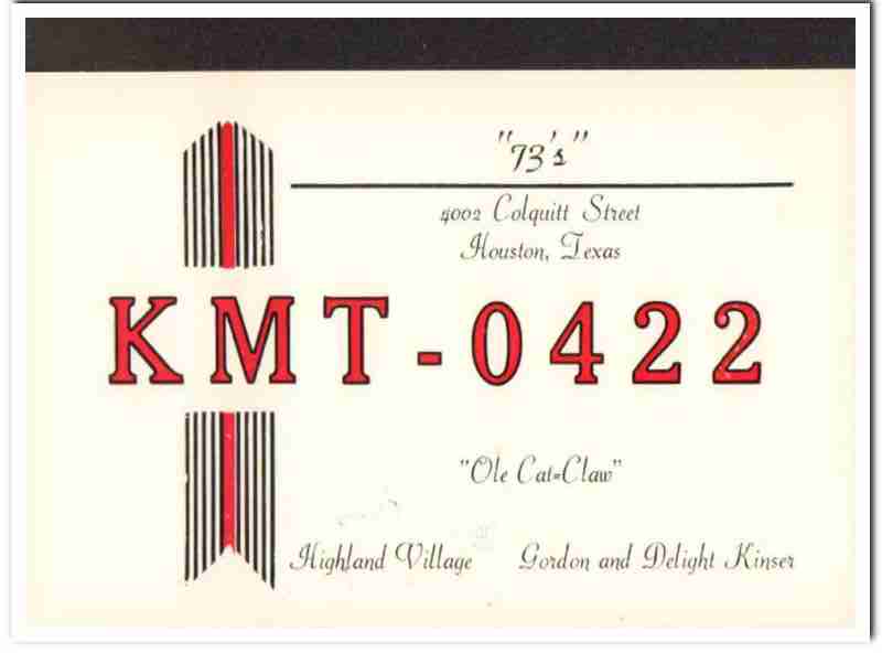 KMT-0422 Gordon Kinser Houston Texas 1960s Vintage Postcard CB QSL 1