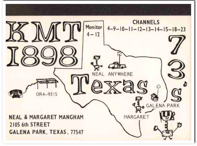 KMT-1898 Neal Mangham Galena Park Texas 1960s Vintage Postcard CB QSL