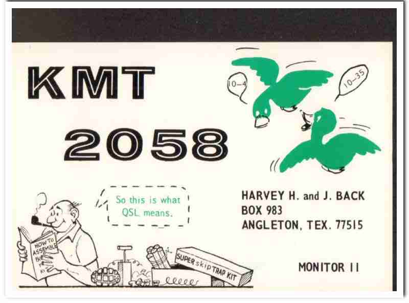 KMT-2058 Harvey Back Angleton Texas 1960s Vintage Postcard CB QSL Card