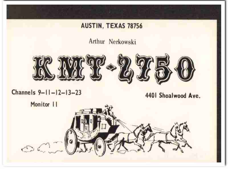 KMT-2750 Arthur Nerkowski Austin TX 1960s Vintage Postcard CB QSL 1
