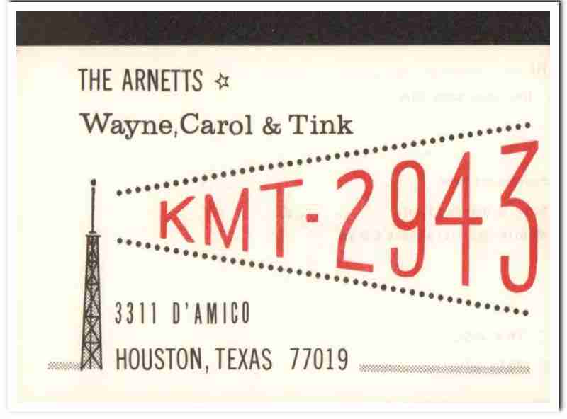 KMT-2943 Wayne Arnett Houston TX 1960s Vintage Postcard CB QSL Card 1