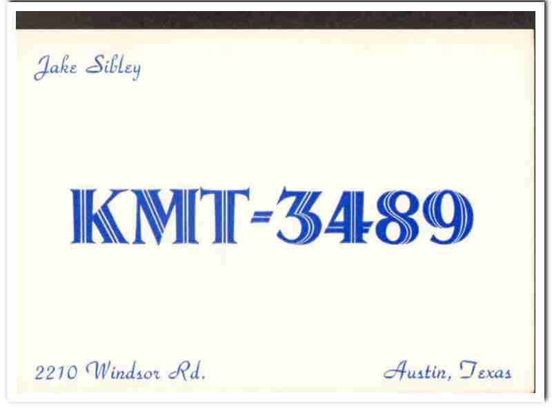 KMT-3489 Jake Sibley Austin Texas 1960s Vintage Postcard CB Radio QSL