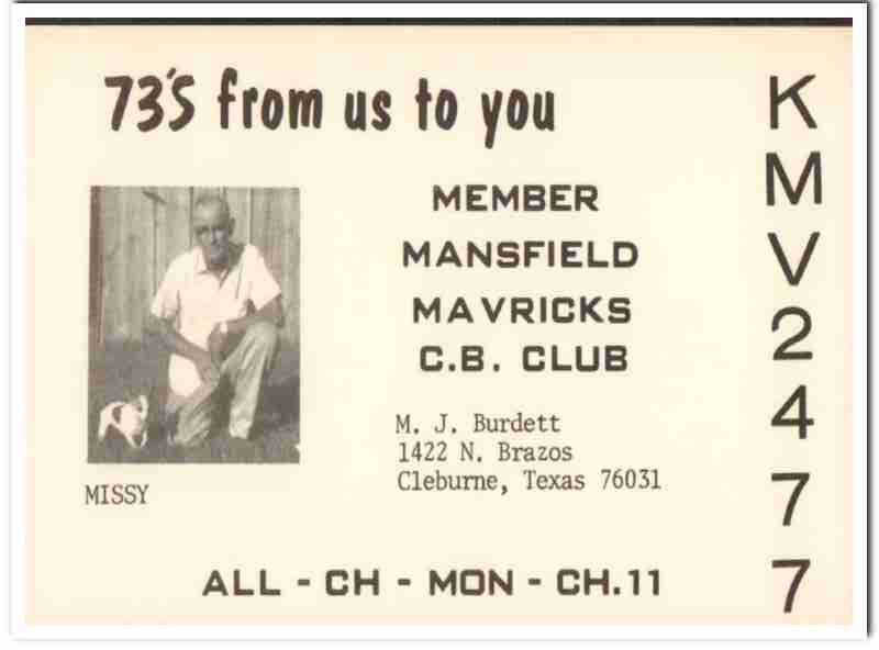 KMV-2477 M J Burdett Cleburne TX 1960s Vintage Postcard CB QSL Card 1