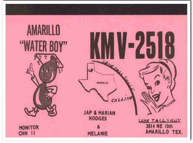 KMV-2518 Jap Hodges Amarillo TX 1960s Vintage Postcard CB QSL Card 1
