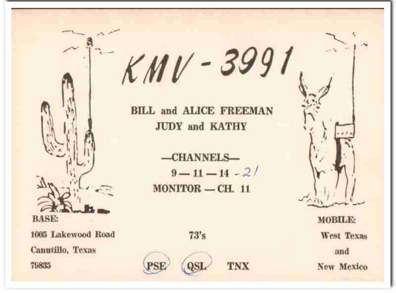 KMV-3991 Bill Freeman Canutillo Texas 1960s Vintage Postcard CB QSL 1
