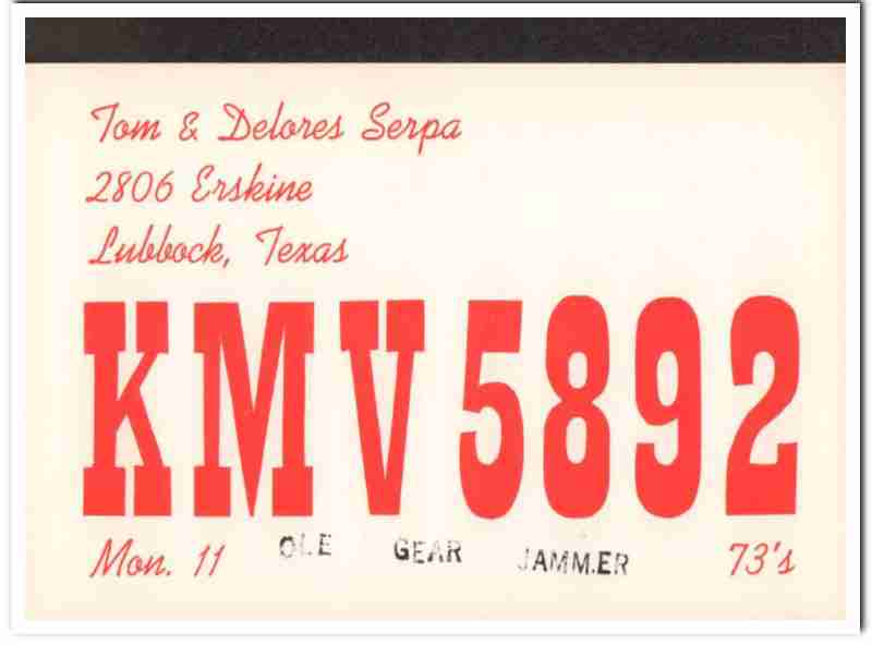 KMV-5892 Tom Serpa Lubbock Texas 1960s Vintage Postcard CB Radio QSL