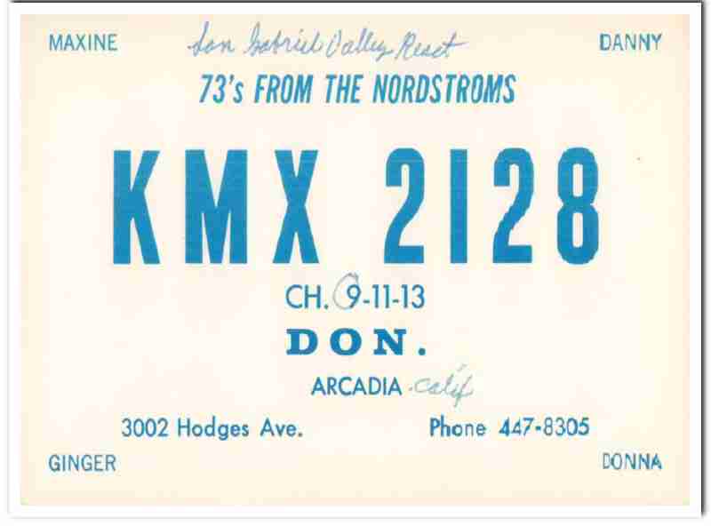 KMX-2128 Don Nordstrom Arcadia CA 1960s Vintage Postcard CB QSL
