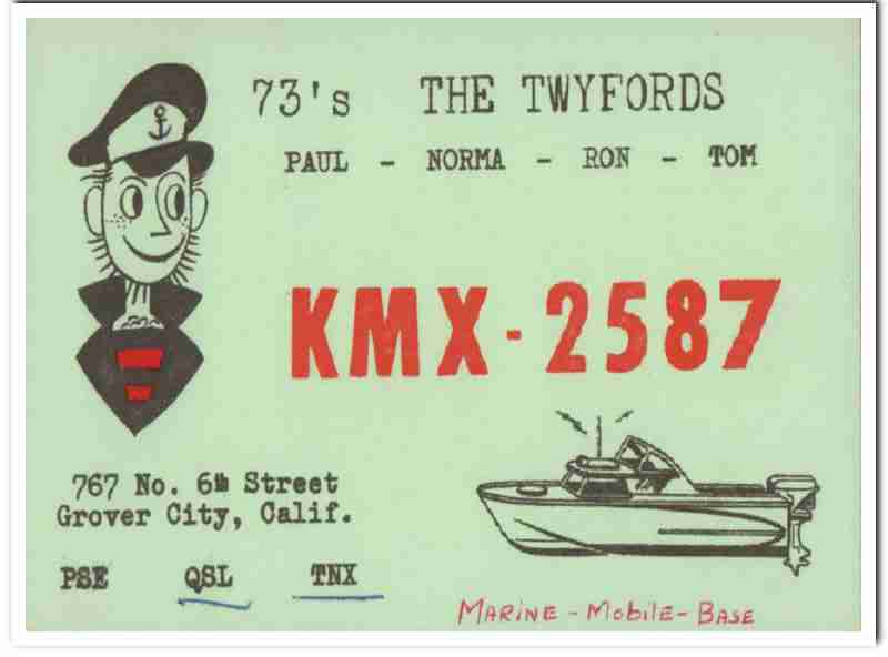 KMX-2587 Paul Twyford Grover City CA 1960s Vintage Postcard CB QSL 2