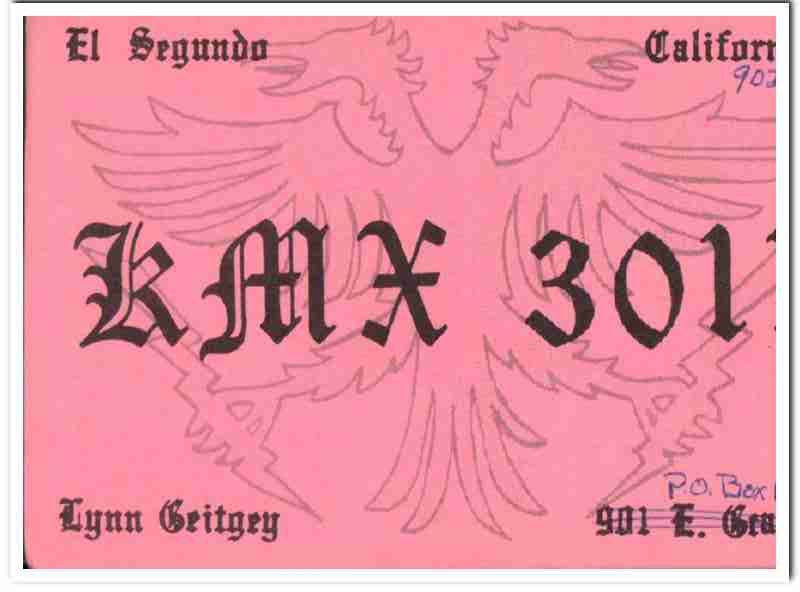 KMX-3011 Lynn Geitgey El Segundo CA 1960s Vintage Postcard CB QSL