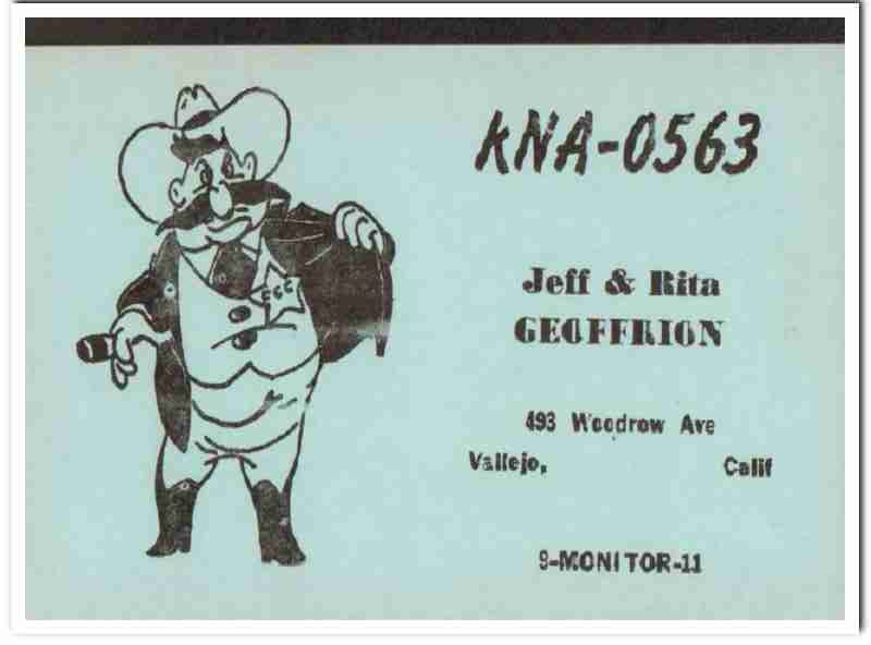 KNA-0563 Jeff Geoffrion Valiejo CA 1960s Vintage Postcard CB QSL