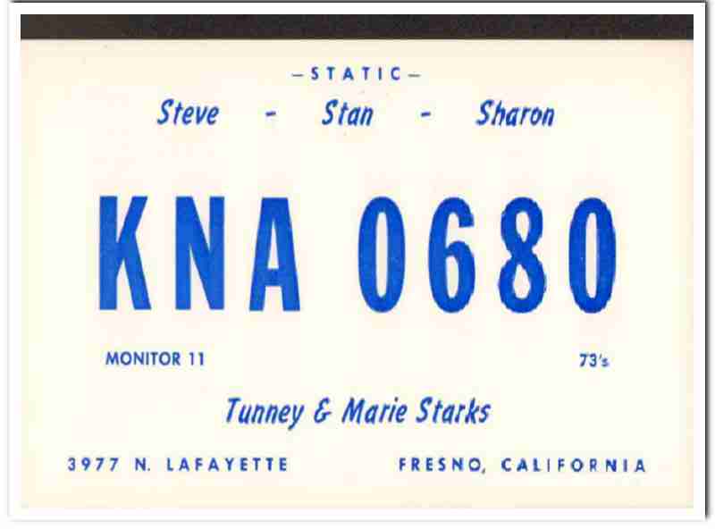 KNA-0680 Tunney Starks Fresno CA 1960s Vintage Postcard CB QSL Card