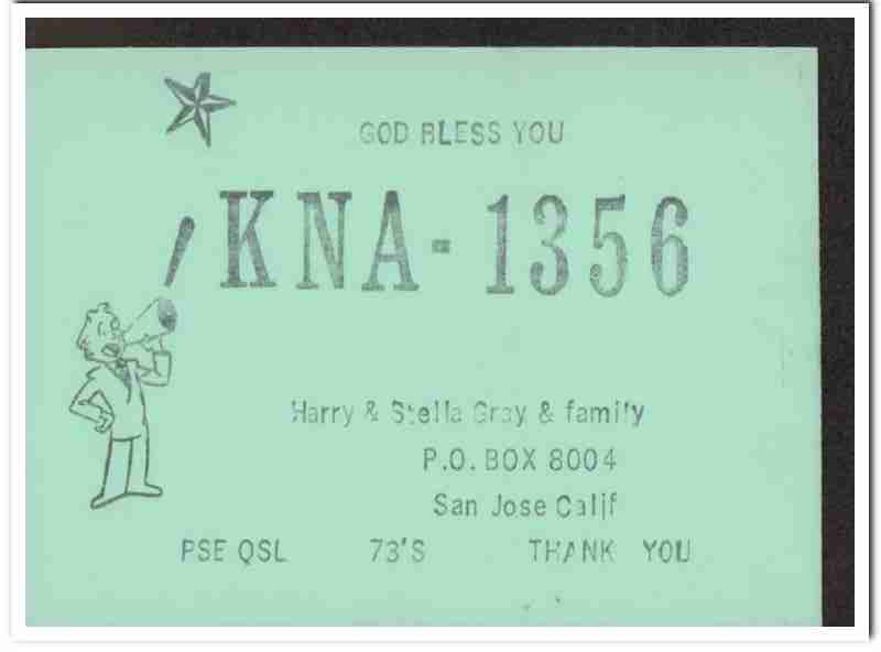 KNA-1356 Hb Gray San Jose CA 1960s Vintage Postcard CB QSL Card 1