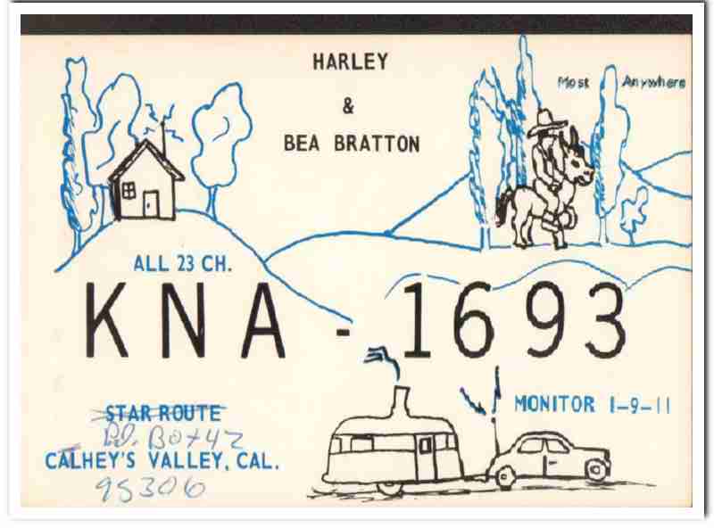 KNA-1693 Harley Bratton Cathey Valley CA 1960s Vintage Postcard CB QSL