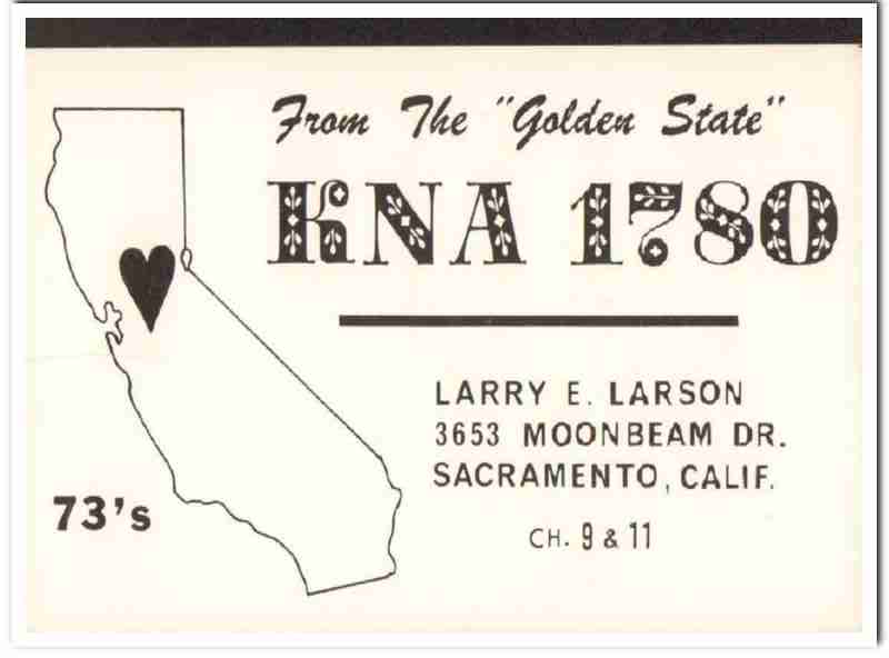 KNA-1780 Larry Larson Sacramento CA 1960s Vintage Postcard CB QSL