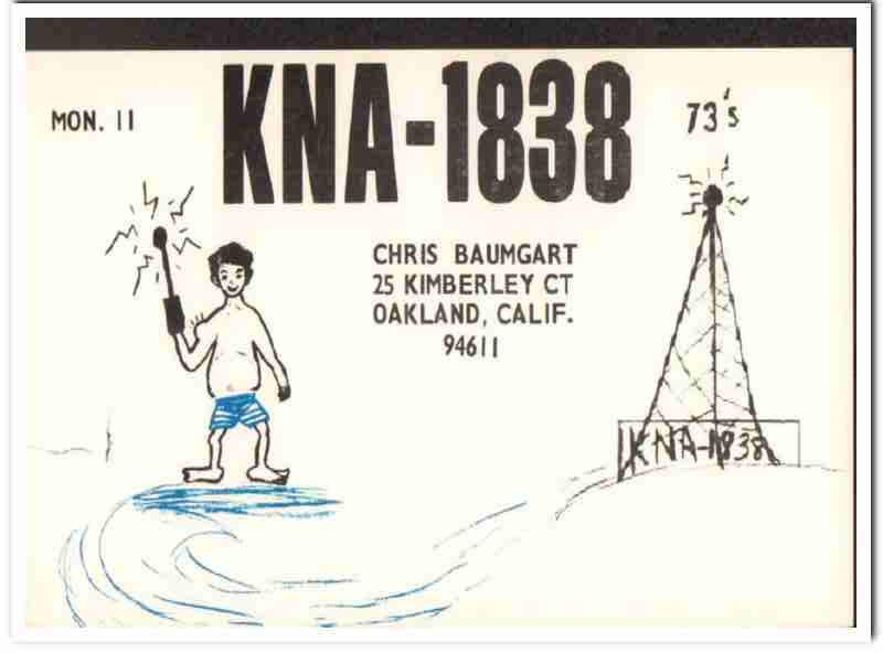 KNA-1838 Chris Baumgart Oakland CA 1960s Vintage Postcard CB QSL