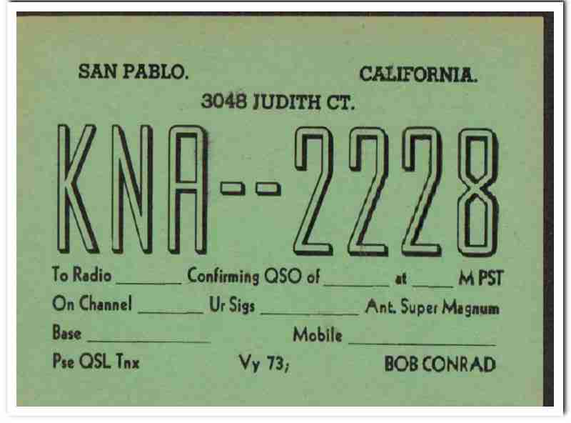 KNA-2228 Bob Conrad San Pablo CA 1960s Vintage Postcard CB QSL Card