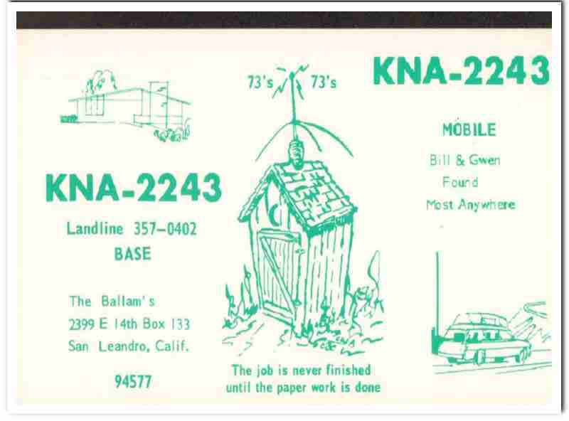 KNA-2243 Bill Ballam San Leandro CA 1960s Vintage Postcard CB QSL 1