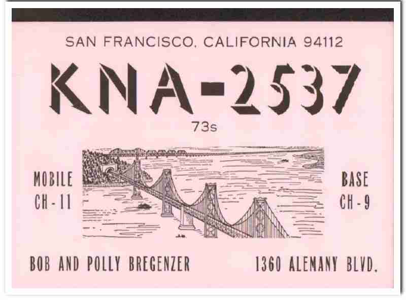 KNA-2537 Bob Bregenzer San Francisco CA 60s Vintage Postcard CB QSL 2