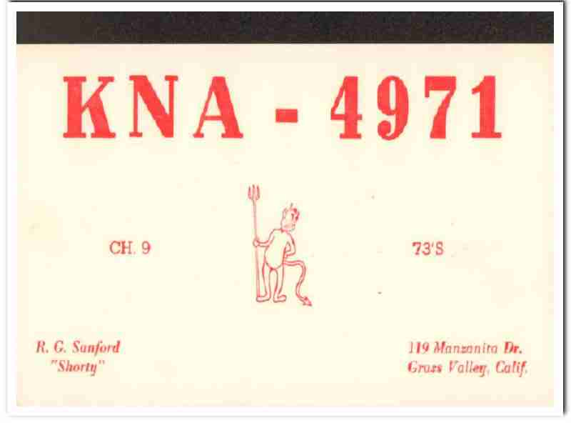 KNA-4971 R G Sanford Grass Valley CA 1960s Vintage Postcard CB QSL 2