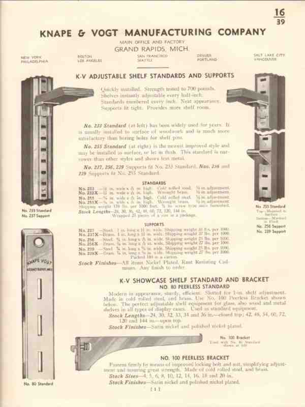 Knape Vogt Mfg Company 1941 Vintage Catalog Shelf Standards Brackets