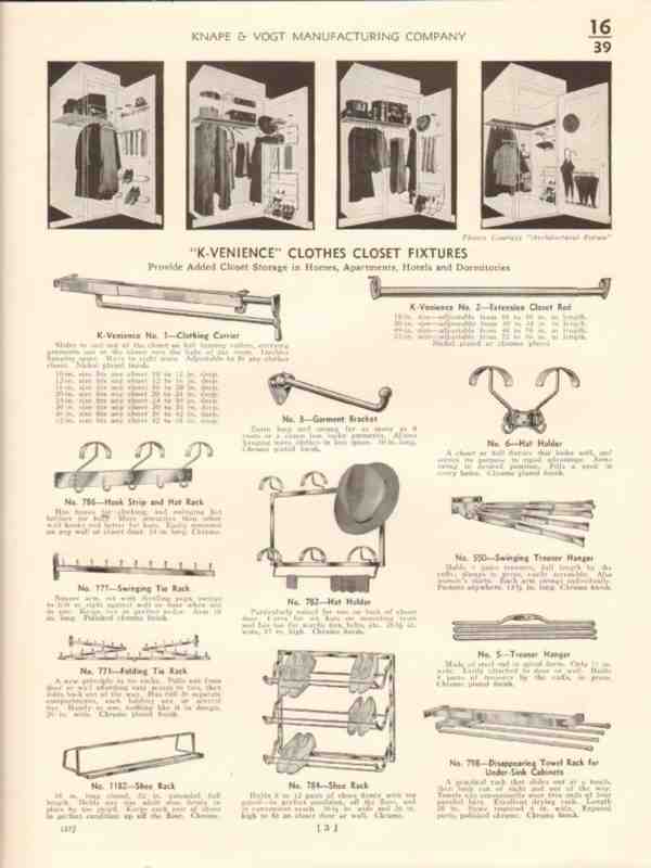 Knape Vogt Mfg Company 1940 Vintage Catalog Closet Fixtures K-Venience