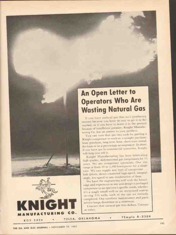Knight Mfg Company 1962 Vintage Ad Oil Field Wasting Natural Gas