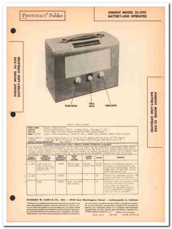knight model 5c-290 4-tube am radio receiver sams photofact manual