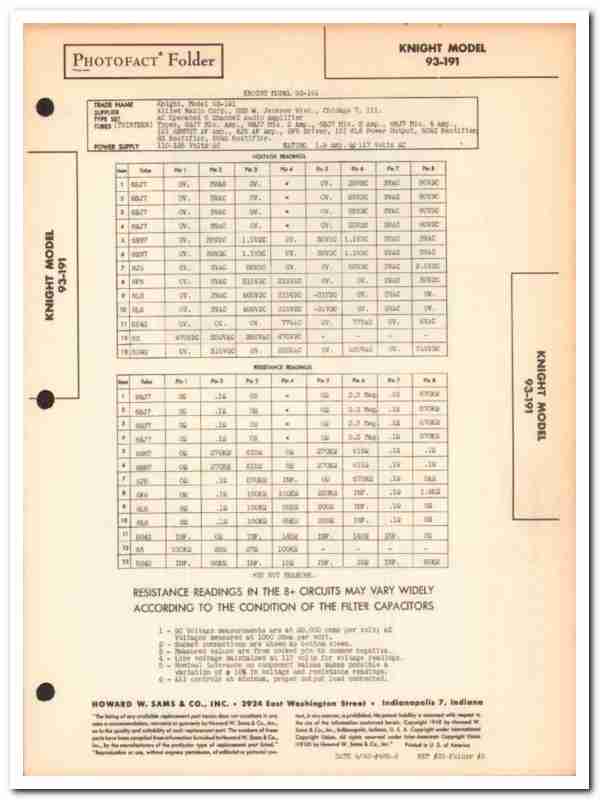 knight model 93-191 13-tube 6-ch audio amplifier sams photofact manual