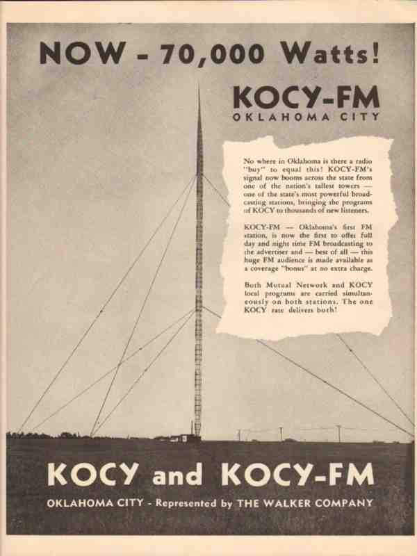 kocy kocy-fm 1948 oklahoma city ok 70000 watt radio station vintage ad