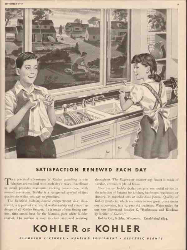 kohler company 1947 satisfaction renewed every day plumbing vintage ad