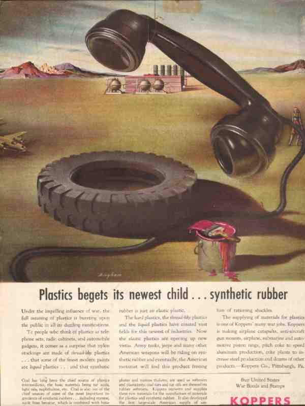 koppers company 1943 plastic begets synthetic rubber ww2 vintage ad