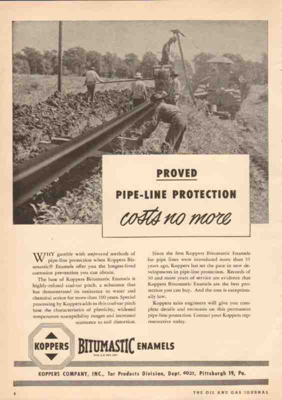 Koppers Company 1951 Vintage Ad Pipeline Protection Bitumastic Proved