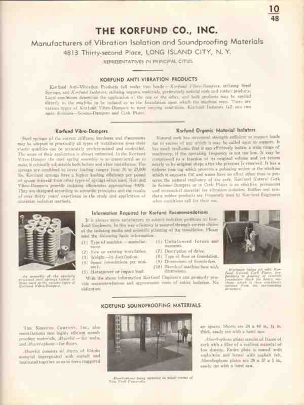 Korfund Company 1936 Vintage Catalog Vibration Isolation Material
