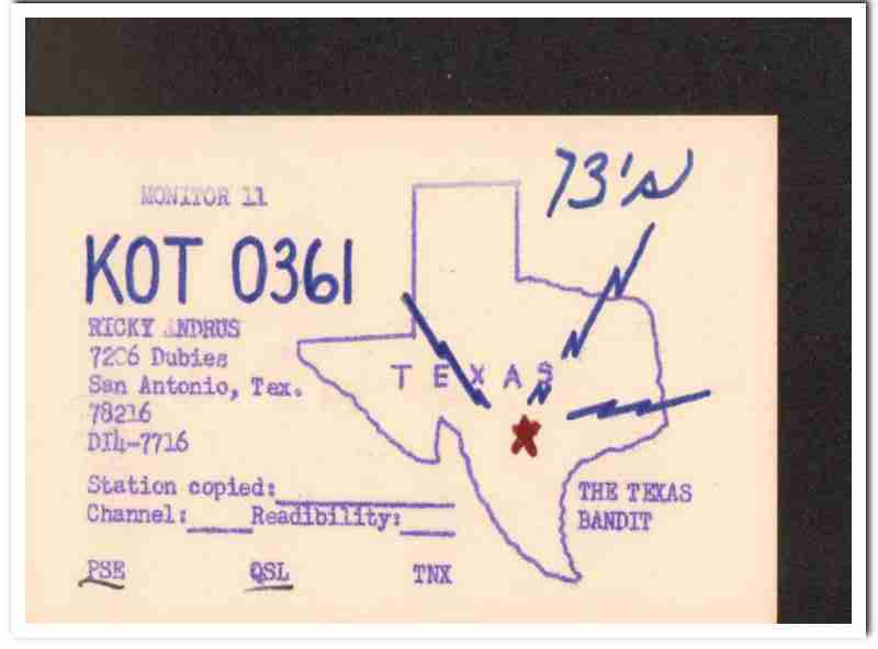 KOT-0361 Ricky Andrus San Antonio Texas 1960s Vintage Postcard CB QSL