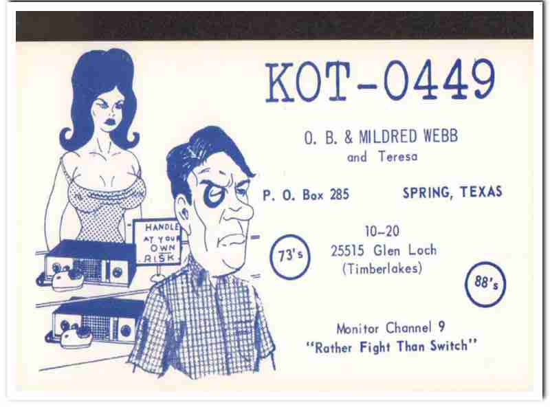KOT-0449 O B Webb Spring Texas 1960s Vintage Postcard CB Radio QSL
