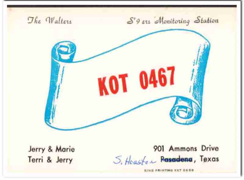 KOT-0467 Jerry Walters South Houston TX 1960s Vintage Postcard CB QSL