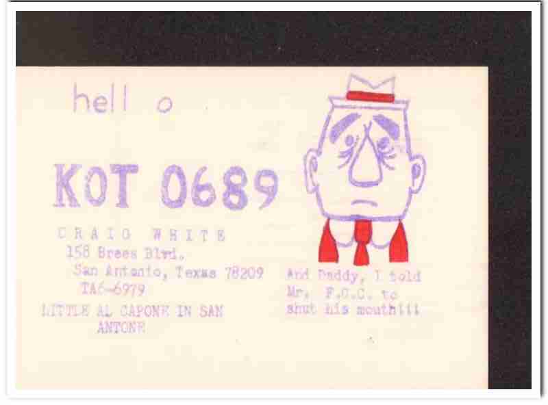 KOT-0689 Craig White San Antonio Texas 1960s Vintage Postcard CB QSL