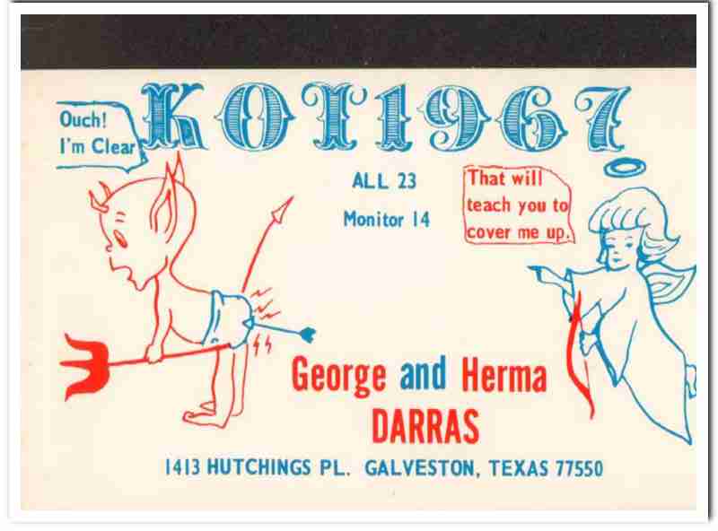 KOT-1967 George Darras Galveston Texas 1960s Vintage Postcard CB QSL