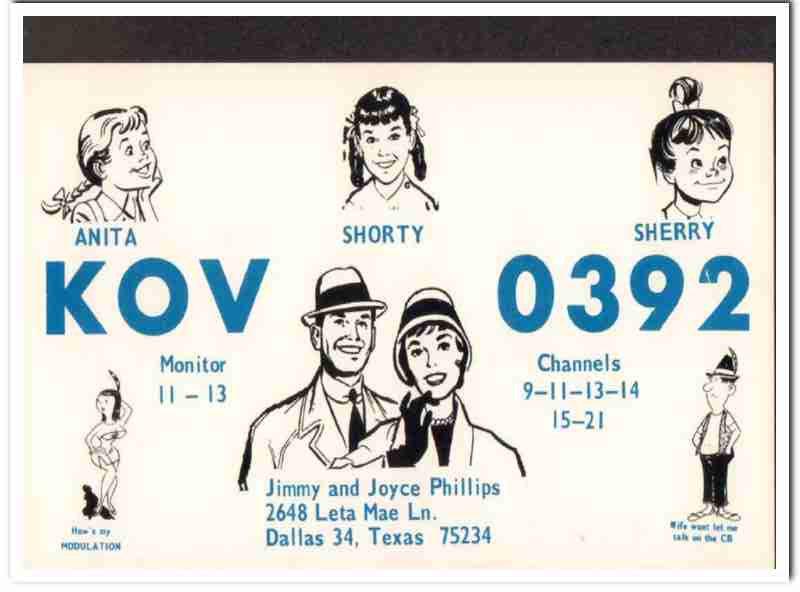 Original QSL postcard from the mid to late 1960s.This unused card was sent from CB radio station: KOV-0392. Was issued to Joyce and Jimmy Phillips, at 2648 Leta Mae Lane, Dallas, Texas. Children names are Anita, Shorty and Sherry Phillips. During the 1920s and 1930s, amateur ham radio operators adopted the practice of two-way exchanging of QSL postcards, to confirm their radio contact, with a report of reception. QSL cards got to be known as wallpaper, commonly used to decorate the walls of their radio equipment room. During the 1960s, CB citizen band radio became popular, and the practice of exchanging QSL cards to confirm radio contacts was enjoyed by many with this new hobby. Today, these cards are very collectible and look great matted and framed.