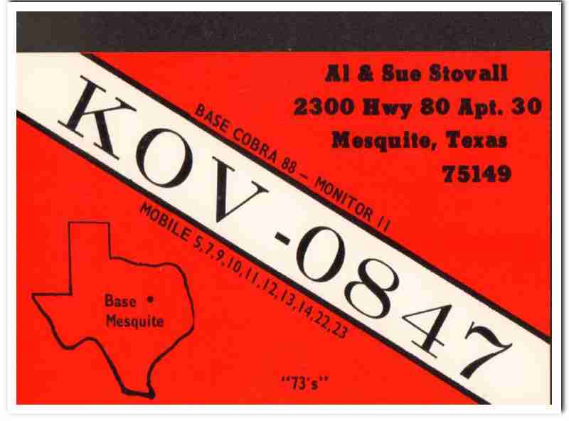 KOV-0847 Al Stovall Mesquite TX 1960s Vintage Postcard CB QSL Card 1