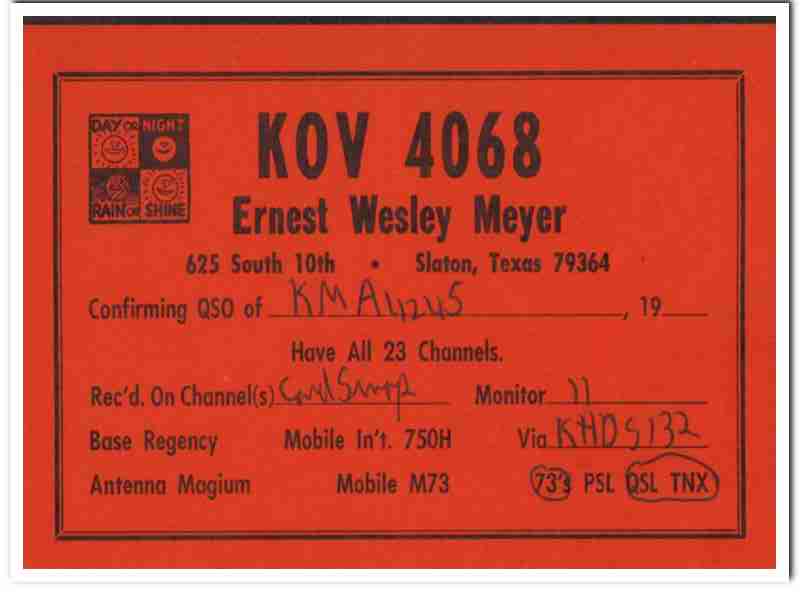 KOV-4068 Ernest Meyer Slaton Texas 1960s Vintage Postcard CB Radio QSL